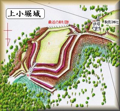 上小堀城の城主に関しては、さまざまな伝承があるようだが、はっきりとした事は不明である。地元領主の居館というよりは、戦時の砦といったものであった可能性もあるだろう。その辺り、もう少し調べてみたいものである。