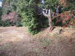 この土塁には、北東部に切れている部分が見られるのだが、どうも虎口ではなく、台地下にごみを捨てるために近年に削られたもののようである。