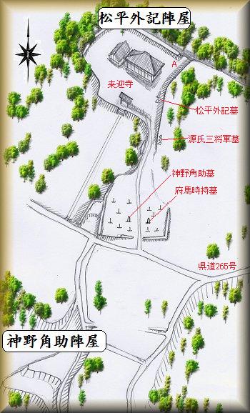 松平外記陣屋は、来迎寺の場所にあったという。というよりも来迎寺を一時的に陣屋に取り立てていたというように理解していた方がいいかもしれない。来迎寺の住職は源頼朝から陣羽織を頂戴したという伝承を持つくらいであるから、寺院の方が陣屋よりもずっと以前から存在していたはずである。