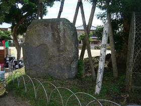 | 来迎寺墓地にある神野角助の墓。『家忠日記』などでおなじみの人物である。かなり大きな宝筐印塔のようだが、下の部分がなくなっているように見える。 | 同じく来迎寺墓地にある府馬時持の墓。時持は角助の妹婿であったということで、その関係で角助がこの地に墓所を定めたのであろう。角助の墓と同規模の宝筐印塔である。 |