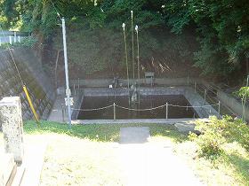 方形でかなり大きな井戸であり、その中心部には倶利伽羅不動の石造が鎮座している。