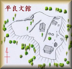 平良文館はすでに土取りによって隠滅してしまっている。『千葉県の歴史』の測量図から想像すると、このようなイメージであり、4棟ほどの建物によって構成されていたようである。