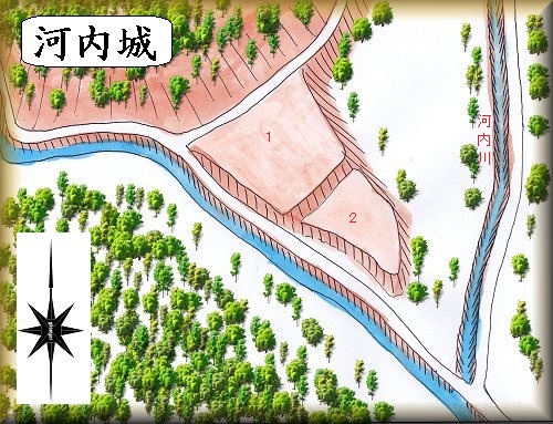 河内城は多田城の支城で、本間半兵衛という者が城主であったという。