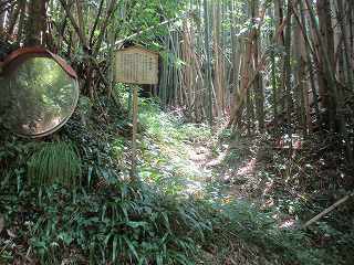 案内板も設置されていたので、主郭まで道が付けられていることを期待したのだが、それは甘かった。この道は途中にある墓地に行くためのものであり、道はそこまでしか付けられていない。