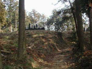 台地の先端部は「諏訪の先」と呼ばれている部分で、ここは現在墓地となっている。30m×50mほどの空間である。この入口が切り通し状になっており、郭であったかなという感じはする。脇には腰曲輪もある。