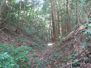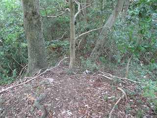 そこから城山方向に入って行くと、すぐに大きな切通しが見えてくる。これは堀切というよりは、古い山道の跡なのではないかと思われる。