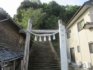 北側下の県道沿いに鳥居が立てられ、そこから神社まで石段が付けられているので、それを登って行ったのだが、登ってみると、神社のすぐ脇を車道が通っており、車で横付けすることも可能であった。