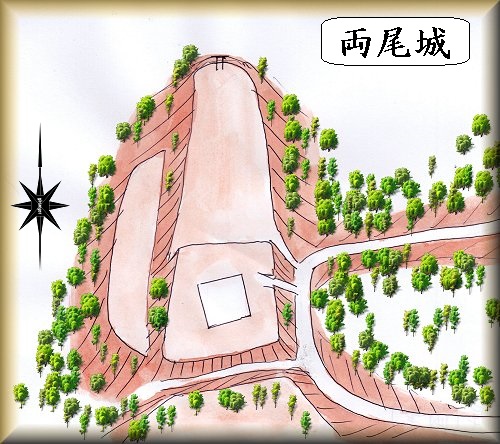 両尾城は、戦国時代に、宮浦宗四郎という土豪が居城としていたという。