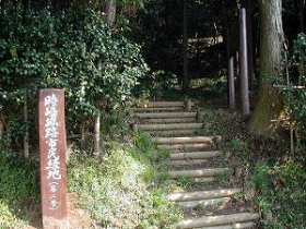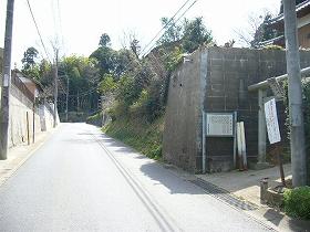 | 写真の比高12mほどの台地の先端部が1郭となっている。 | 台地西側にちょっと入った所に写真の登り口がある。城内は「時崎城跡市民緑地」となっていて、遊歩道が造られている。 |