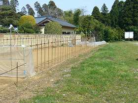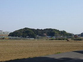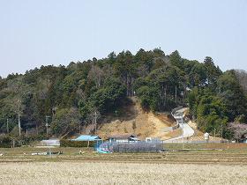 | 南側から見た小篠塚城。比高10mあまりの台地南端部にある。写真に見えるように城址に上がるための道が新しく付けられており、以前とは違って簡単に城内に入れるようになっていた。 | 4郭の様子。現在工事中である。その前に発掘もあるのかな? |