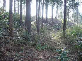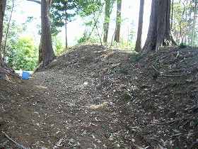 | 1郭東側の張り出し。現在はこの部分の中央に虎口が造られているが、これは最近の工事によるものであり、本来のものではない。 | 1郭北側の土塁。高さ1.5mほど。 |