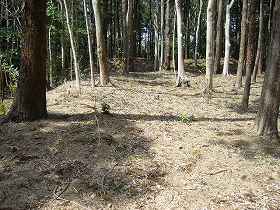 ただ、自然に尾根が続いて城外に接続しているのである。これでは城としてはまったく防御力に欠ける構造である。本来あった堀切などが埋められてしまったものなのだろうか、あるいはもともとそのようなものが存在していなかったとすれば、そもそも城であるのかどうかも怪しいような気がしないでもない。