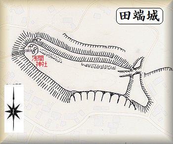 田端城は小篠塚城のすぐ東側の台地にあり、対峙するような位置関係にある。比高15mほどの台地で、台地の西端部には浅間神社が祭られている。