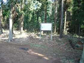 とにかく、北側へ100m余り進んでいくと坂道を降りた所で道が2つに分かれている。この時まっすぐ進んでしまうと、何かの工場の所に出て行き止まりになってしまう。城址に行くためには左側の道を上がっていくのである。上がった後、また道が下って上がってを繰り返すが、どんどん進んで行けばやがて道は突き当たり、そこに案内板が建っている。山武町の城址では唯一の案内板である。