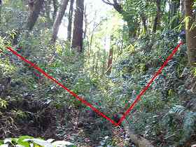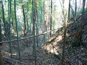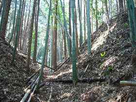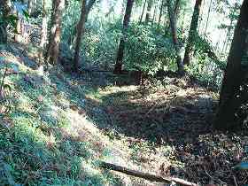 | 5の部分との間の堀切。 | 1郭南側の横堀を西側から見たところ。 |