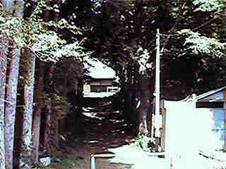 | 妙上寺。この背後の比高20mほどの山が城址である。 | 1郭南側に上がっていく竪堀状の通路。 |