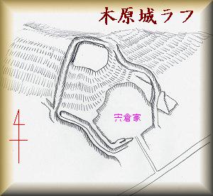 木原城(宍倉城)は現在も宍倉家の敷地内になっている。遺構を見るためには、このお宅の敷地内を通らなければならないようで、遺構の確認ができなかったので、「千葉県所在中近世城館跡詳細分布調査報告書」所収の図を基にしてラフを描いてみた。いつか、城内を探索する機会を得たら、もう少しきちんとした図面を描いてみたいものである。