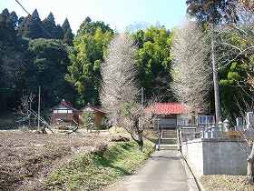| (以前の記述) 埴谷城は山武町の中心部の西のはずれ、妙宣寺の北西の比高10mほどの台地上にあった。この地方の領主であった埴谷氏の居城である。 日蓮宗で有名な妙宣寺の前に寺の案内板があり、そこに埴谷城についても記載されている。また、日親上人の事跡についても記されている。 埴谷氏の一族で、日蓮宗に帰依した日親は、6代将軍足利義教に「立正安国論」を勧めたが、将軍の怒りにふれ、さまざまな拷問を受けた。特に焼けただれた鍋を被らされたのが最もむごい仕打ちであった。それにも屈しなかったことから、彼は「鍋被り日親」と呼ばれるようになったという。 写真は妙宣寺の西の下にある、日進上人が産湯をつかったとという井戸の跡である。城址はこの裏手の台地にあたる。埴谷城址の入り口は、妙泉寺から八街へ行く県道を200mほど西に行った所にある。小さな床屋さんの脇の小道の入り口に、よく見ると「埴谷城址 100m先」というちいさな標識がある。しかし城址はすっかり山林化している。 |