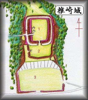 ここが平素の居館であるというように想像してみるのがよさそうだ。 といったような感じで、椎崎城の平素の居館が3の部分、戦時の避難場所が台地上の1郭というように考えてみた。