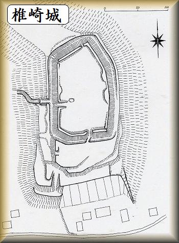 | (以前の記述) 椎崎城は、JR日向駅の東1kmの所にある。比高10mほどの台地である。台地上は山林化しているが、「概念図」でみると、単郭の方形の居館であり、周囲を土塁と空堀が囲んでいる。 城主は「上総国誌」では千葉一族の椎崎氏、「山武町誌」では、伊達氏の一族で千葉氏に仕えた若菜氏であるという。どちらが正しいのか分からないが、城址の下には城主の子孫であるという若菜氏という家がある。この城も千葉氏や里見氏、酒井氏の間で揺れ動き、何度かの戦乱を経験したらしい。 |