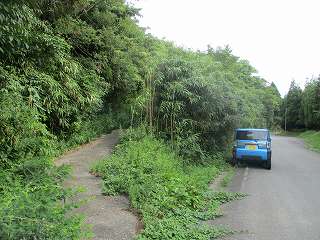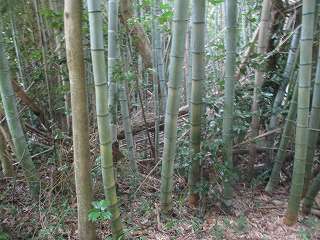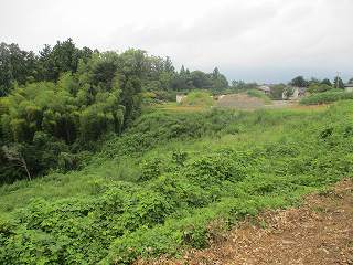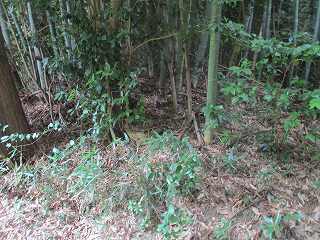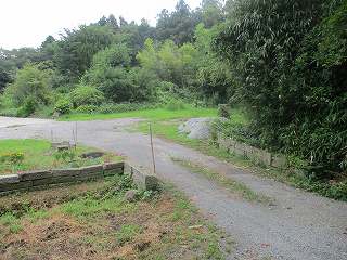 遺跡地図を見てみると、この台地の南端部辺りが城域ということになっている。南端部には廃屋があり、その先は深い竹ヤブとなってしまっている
