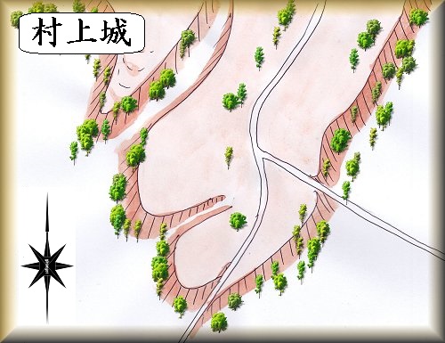 村上神社と西側に向かい合う比高40mほどの山稜にあった。
