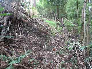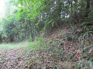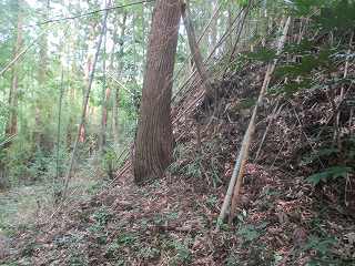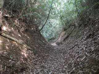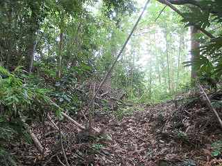 側面部から台地内部に入り込んで行く道を進んで行った所、途中で大規模な切通しの所に出た。あるいはこれが堀切であったのかもしれない。
