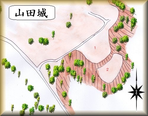 | 山田城の入口。 | 側面部の深い谷。 |