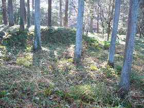 | 2郭北側の土塁を外側から見たところ。本来はここに堀が存在していた事であろう。 | 2郭内部にある窪み状部分。おそらく後世の土取りによるものであろう。 |