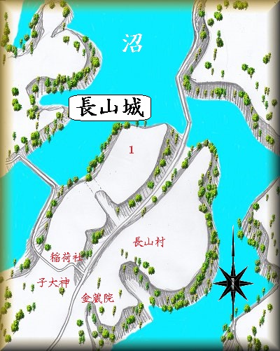 すぐ南側に隣接して旧長山村の集落があり、城は谷戸部を挟んで隣接した位置にあることからすると、長山村の住人たちが非難する村の城であった、というのが次に考えられる可能性、といったところである。