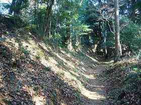 大根氏館南端の切り通しの道路。これも堀切の跡であったと思われる。 |