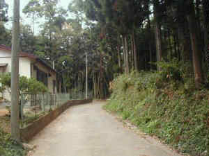右の写真は山田公会堂から西側に続いている道。西側から城内に入る虎口の跡のように思われる。この道の右側は前記の深い沢で、この沢から城内に進入するのはとても困難である。
