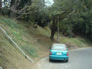 この台地の北側部分には墓地が造成されているので、ここまで車で来ることが可能である。墓地に車を停めて歩きだす。