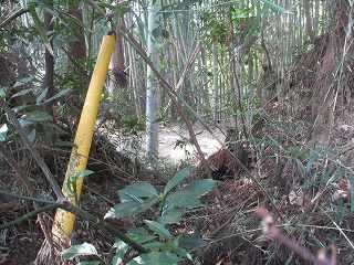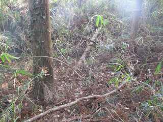 龍光院のすぐ南側は山林となっている。東西40m、南北70mほど。西側の土手はやはり削り落としの急斜面である。