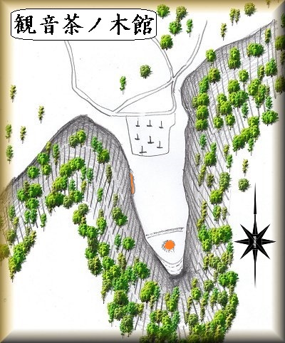 観音茶ノ木城は、大崎城の南西1.2kmの所にある。竟成小学校の南側600m辺りの比高30mほどの台地にあったらしい。南側に突き出した比高20mほどの細長い台地である。