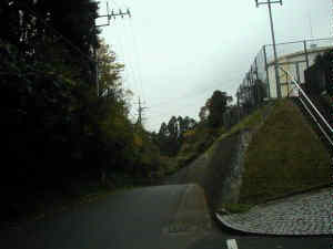 玉造上の台城は、比高30mほどの、現在、玉造浄水場が建っている台地にあったらしい。浄水場の建設のため多くが破壊されてしまったらしく、遺構もよくは分からない。写真の右手が浄水場である。浄水場なのになぜかテニスコートがあって、テニスを楽しんでいる人たちが見える。あの人たちは薮に分け入るなんてことはしないんだろうなあ・・・・。この浄水場の右手下は深く入り込んだ沢になっている。これが天然の城塁であろう。