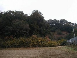 写真はかろうじて削られずに残った中央部分である。比高20mほどで、地元では「ゆうがい山」というように呼ばれている。「ゆうがい」はもちろん要害の転じたものである。南西の削り取られてしまった辺りは「根古屋」と呼んでおり、要害と根古屋がセットになった戦国期の城郭であると思われる。この地域にはよくあるパターンである。