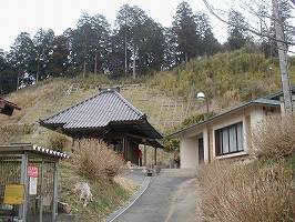 | 台地下の龍金寺から背後の1郭を見る。比高15mほどだが、全体に崩落防止工事が施されており、こちら側から上がるのは難しい。 | 尾根上にある妙見の祠。ここを城址とする根拠の1つはこの妙見社にある。 |