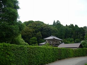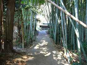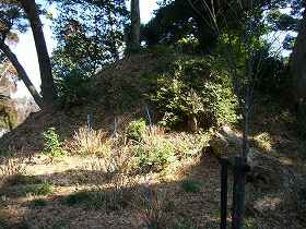 | (以前の記述)酒造城は、東金城の出城の1つで、酒井氏の家臣、古川民部小輔の居館と伝えられる。千葉東金道路のすぐ南側の台地上の先端部に位置する単郭の居館で、敷地内は、円蔵寺と墓地になっている。写真は入り口から円蔵寺を見たところだが、道の両脇は空堀になっている。また、寺の裏側は、墓地を隔てて、幅6m、深さ3mの空堀が取り巻いている。 | |