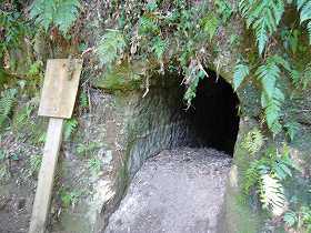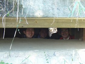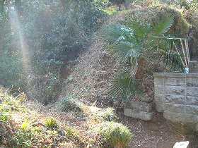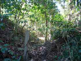 | 4郭と3郭との間の堀切。深さ5mほど。 | 2郭にあるトーチカには、時々亡霊が出るという・・・・・。 |