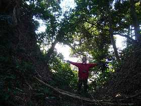 | 尾根は細く北側に延びていく。 | 堀切1。こちらも深さ6mほど。 |