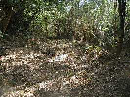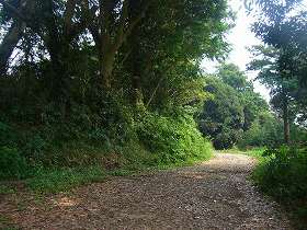 | Aの虎口の下。上がった所がAの場所である。 | Aの虎口から北側の土塁を見たところ。高さ2mほどの塚の周囲に犬走りがある。 |