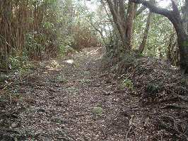1郭の下には2の腰曲輪があり、その下に3の郭があるが、3の郭は比較的自然傾斜がそのまま残っている。(といっても、笹薮がひどくてよく分からないのであるが。海上町も「町指定文化財」の標柱をいくつも建てているのだから、もう少し何とかして欲しいものである。)