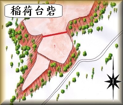 宿内砦と同じ台地上、南に500mほどの台地の最東南端に稲荷台の砦があったという。
