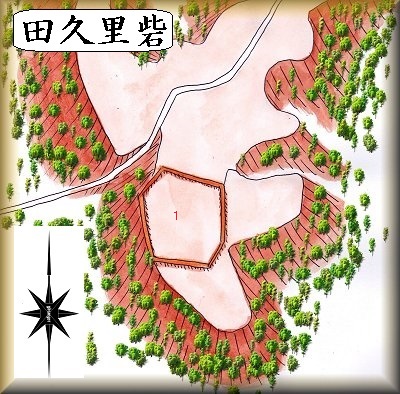 大手口の北西300mの比高20mほどの台地の先端部に田久里砦があったという。