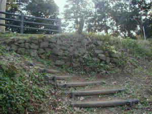 北側の入り口には写真のような石垣がある。小規模なものだが、下総地方では珍しいものである。虎口付近の土砂の崩落を防ぐために、近世になってから積まれたものであろう。同様のものは二の丸の堀にも見られるが、こちらはすでに半ば崩落してしまっている。