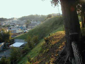 まだ山林が残っている南側の斜面には城塁が残っているかもしれない。(しかし個人の宅地の中だ)
