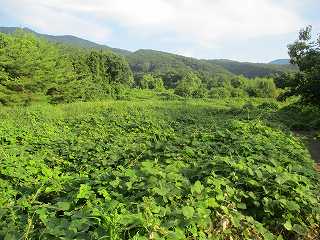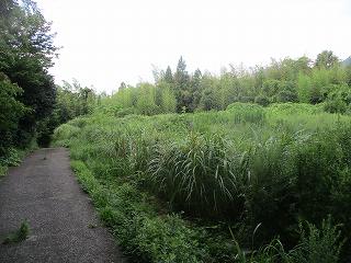 台地上はかつて水田地帯であったようだが、現在では荒蕪地となってしまっていた。この前に訪れた北五十里城で、延々バックしなければならなかったこともあり、車を転回できるところがあるかどうかも不安だったのだが、台地上に一カ所だけ回転できるスペースがあり、そこから引き返すことができた。