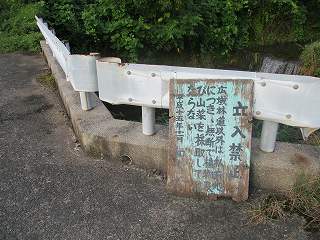 そこから北側に進んで、川を渡ったところに、台地上の畑に行くための道が付けられている。ところがここに「立入禁止」の看板が立てられている。