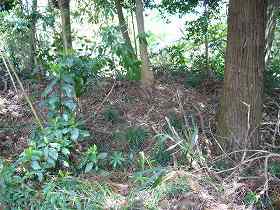 | Cの辺りの様子。左側には土塁も残っている。また、この辺りには井戸の跡もあるというところである。 | 1郭東南側の2の堀。大堀に比較するとだいぶ小さい。 |